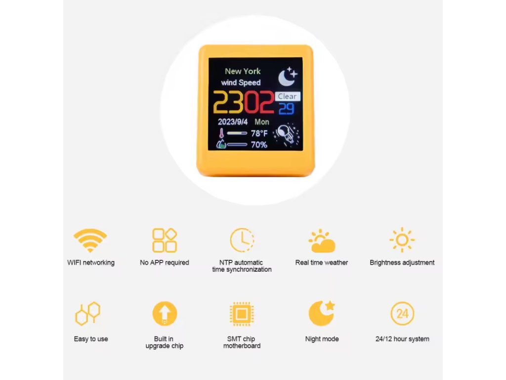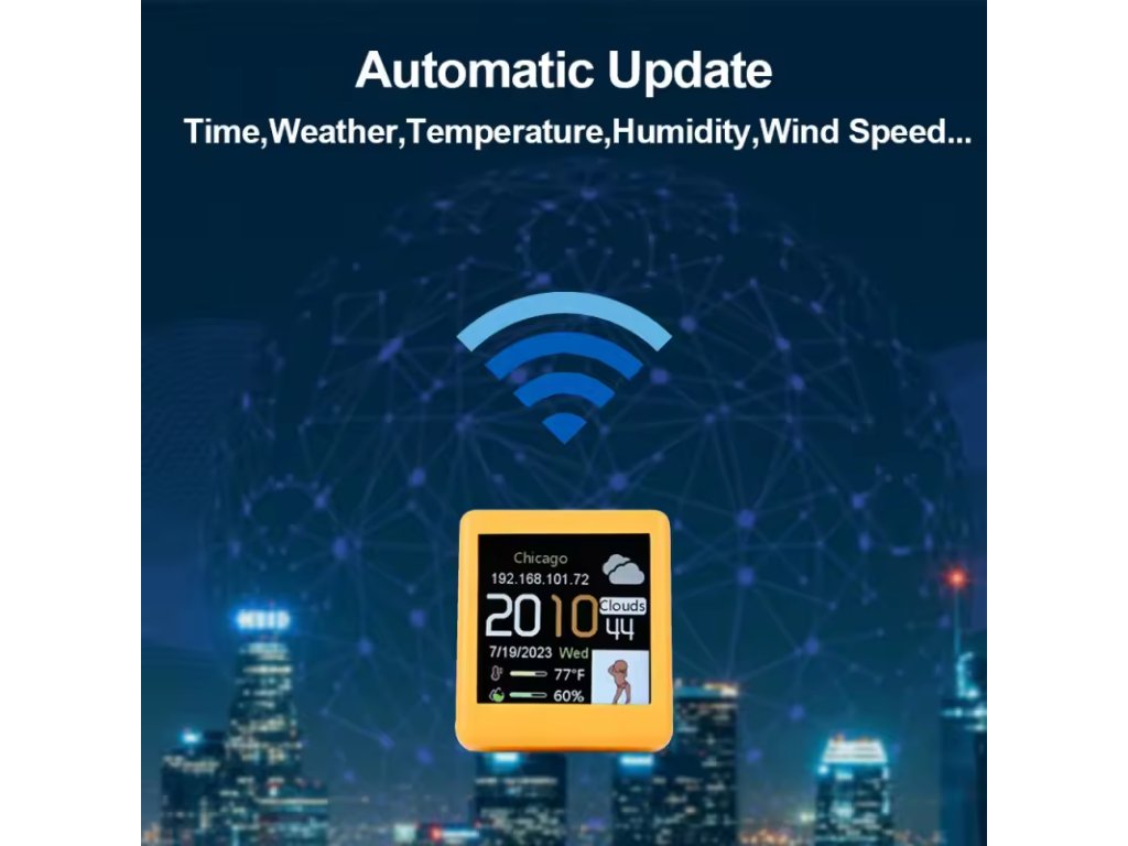 Mini chytrá WiFi meteostanice a hodiny, teplo/vlhkoměr, Animace, USB-C