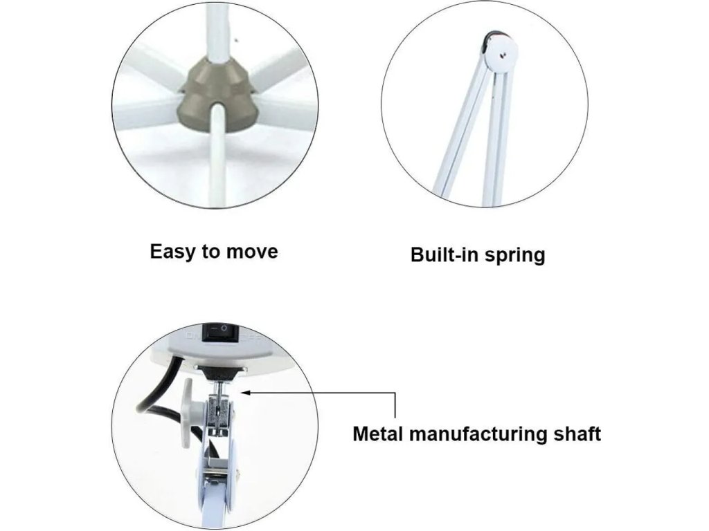 Lupa została zaprojektowana z naciskiem na praktyczność i wygodę. Jej obrotowa głowica o 360 stopni i składane ramię umożliwiają precyzyjne ustawienie kąta i wysokości, co docenisz podczas każdej czynności wymagającej dużej dokładności. Solidna podstawa z kółkami gwarantuje stabilność i łatwe przemieszczanie w obrębie miejsca pracy bez konieczności podnoszenia.