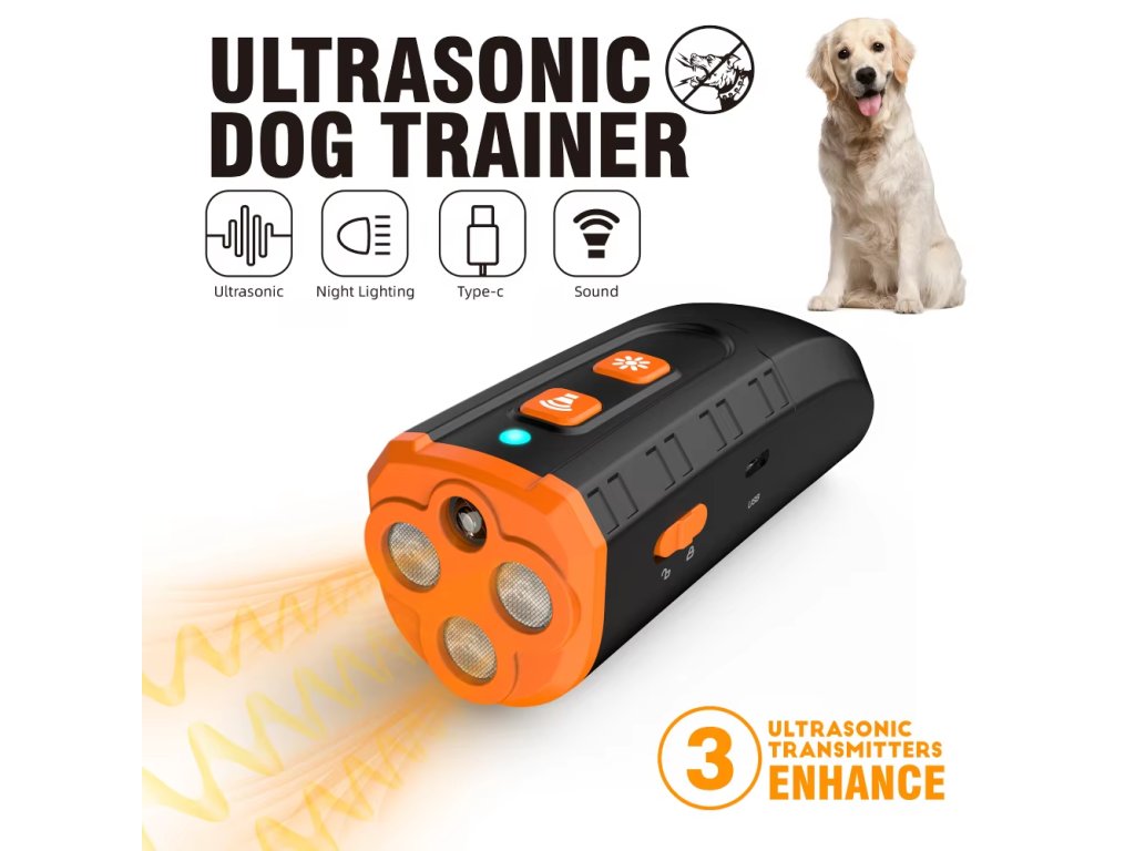 Ultrazvukový odpuzovač a trenažér psů s LED svítilnou, IPX4, USB