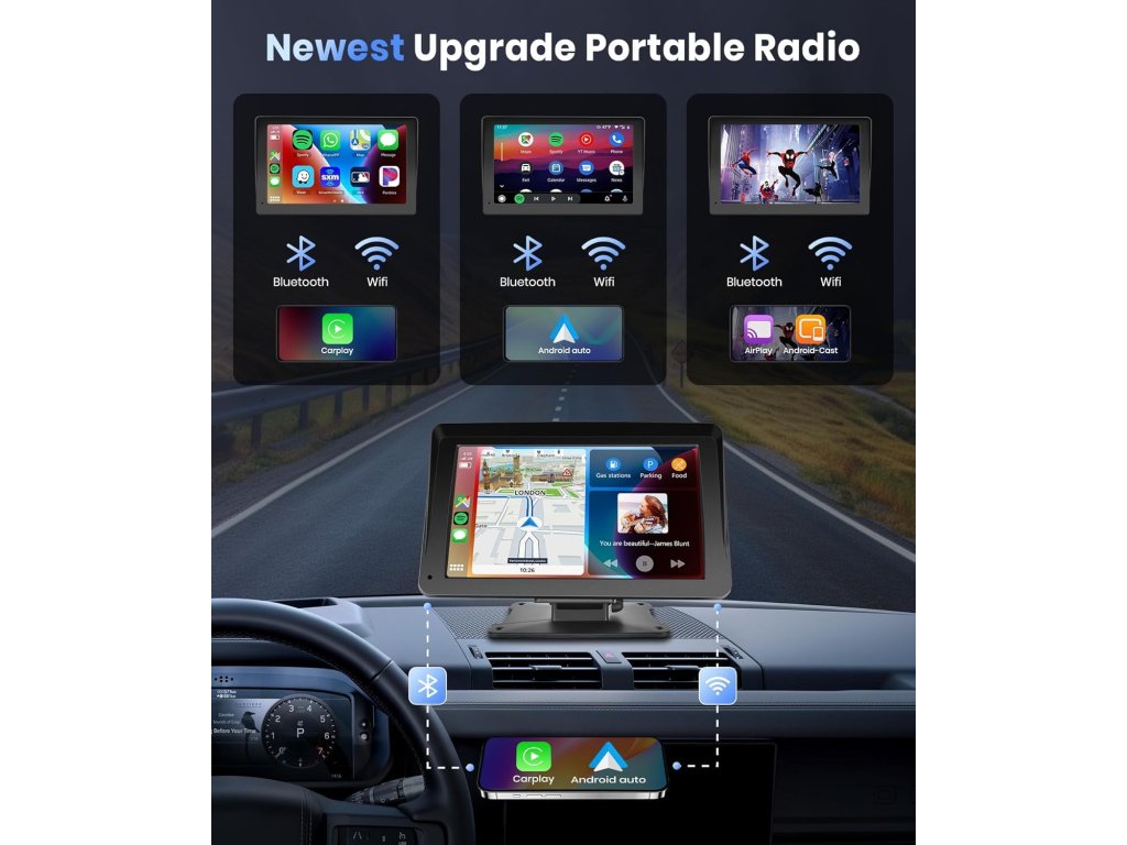 Podofo Přenosné autorádio, 7" dotykové, 7-32V, Carplay/Android Auto