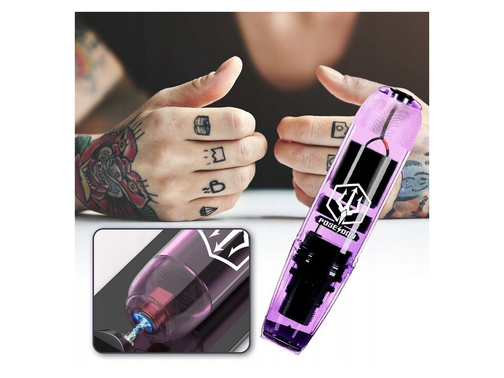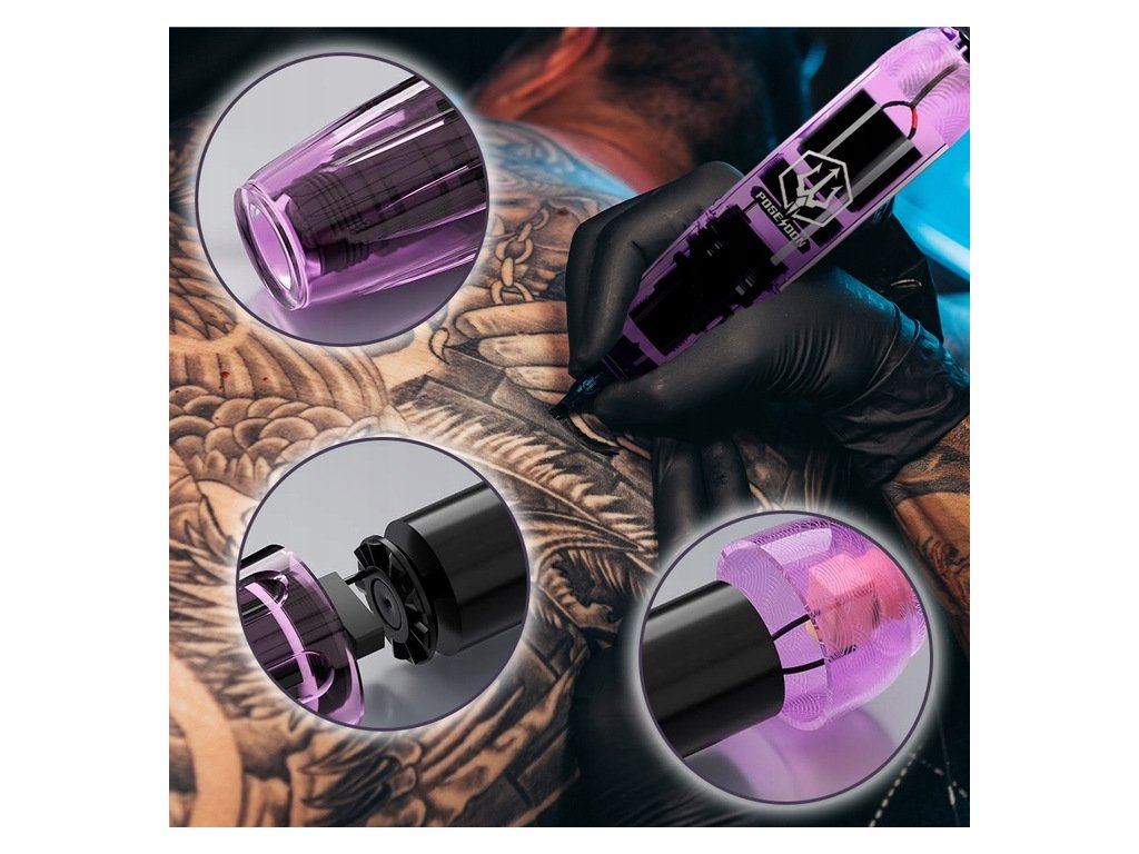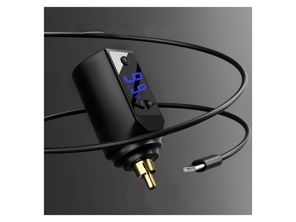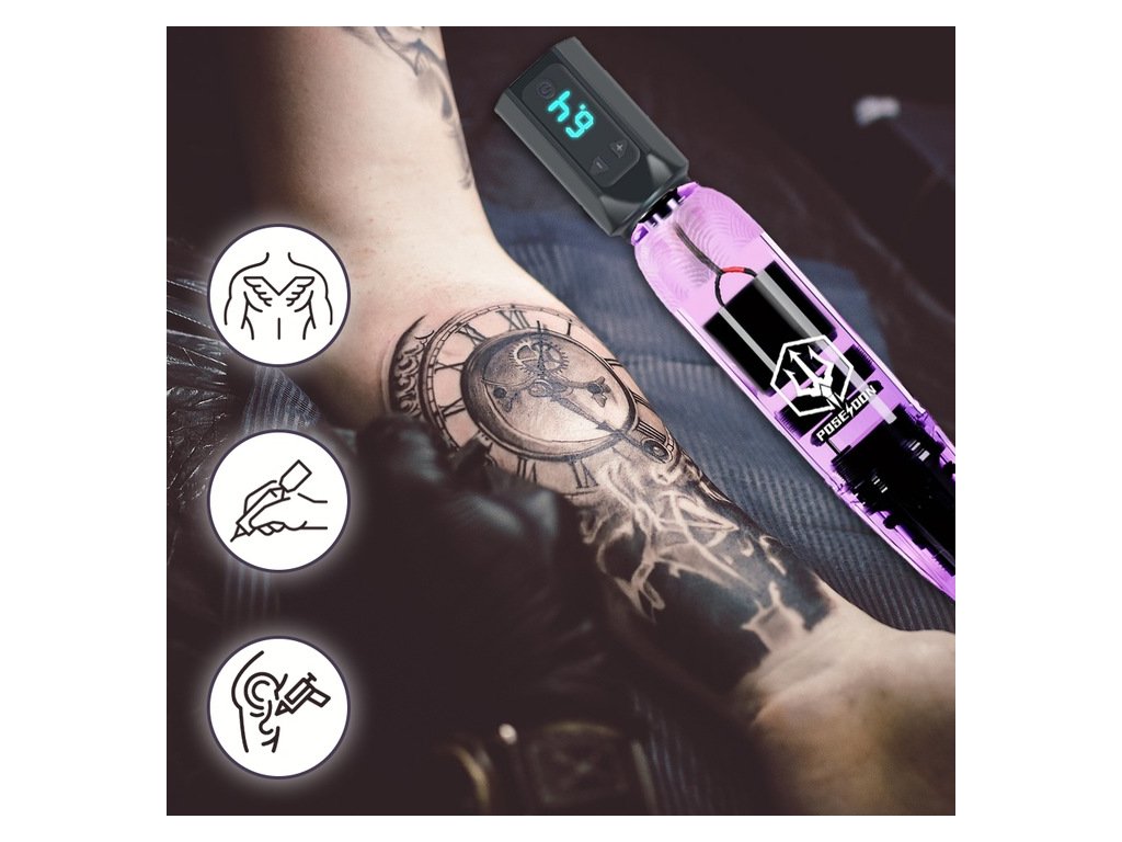 Baterie umožňuje až 6 hodin provozu po přibližně 1,5 hodině nabíjení. Stabilní výkon podporuje plynulé tetování bez výpadků. Bezdrátové provedení s vyměnitelnými bateriemi usnadňuje manipulaci.