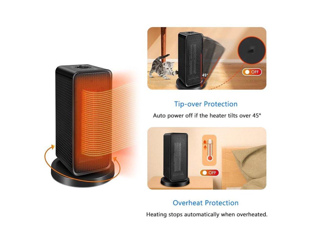 Výrobce kladl velký důraz na bezpečnost, proto přístroj vybavil automatickou ochranou proti přehřátí a senzorem pro případ převrácení. V jakékoli rizikové situaci se topidlo okamžitě samo vypne. Konstrukce je vyrobena z vysoce kvalitních materiálů zpomalujících hoření, které zvyšují celkovou spolehlivost produktu při každodenním používání v domácnosti