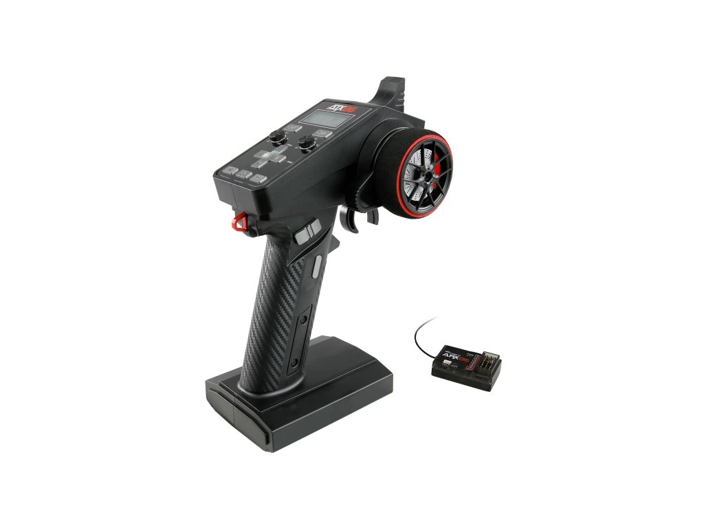 Dálkový ovladač o hmotnosti pouhých 230 g padne velmi dobře do ruky. Je vybaven vysoce kvalitními potenciometry pro odolnost a citlivé ovládání. Pohodlné ovládání jednou rukou zajišťuje přídavná páka namontovaná na volantu. Ovládací prvky zahrnují plyn, řízení, tlačítko na rukojeti (SWB), třípolohový přepínač nad rukojetí (SWA) a dvě jednoduchá tlačítka nahoře. Digitální trim udržuje všechna nastavení, i když je dálkový ovladač vypnutý.