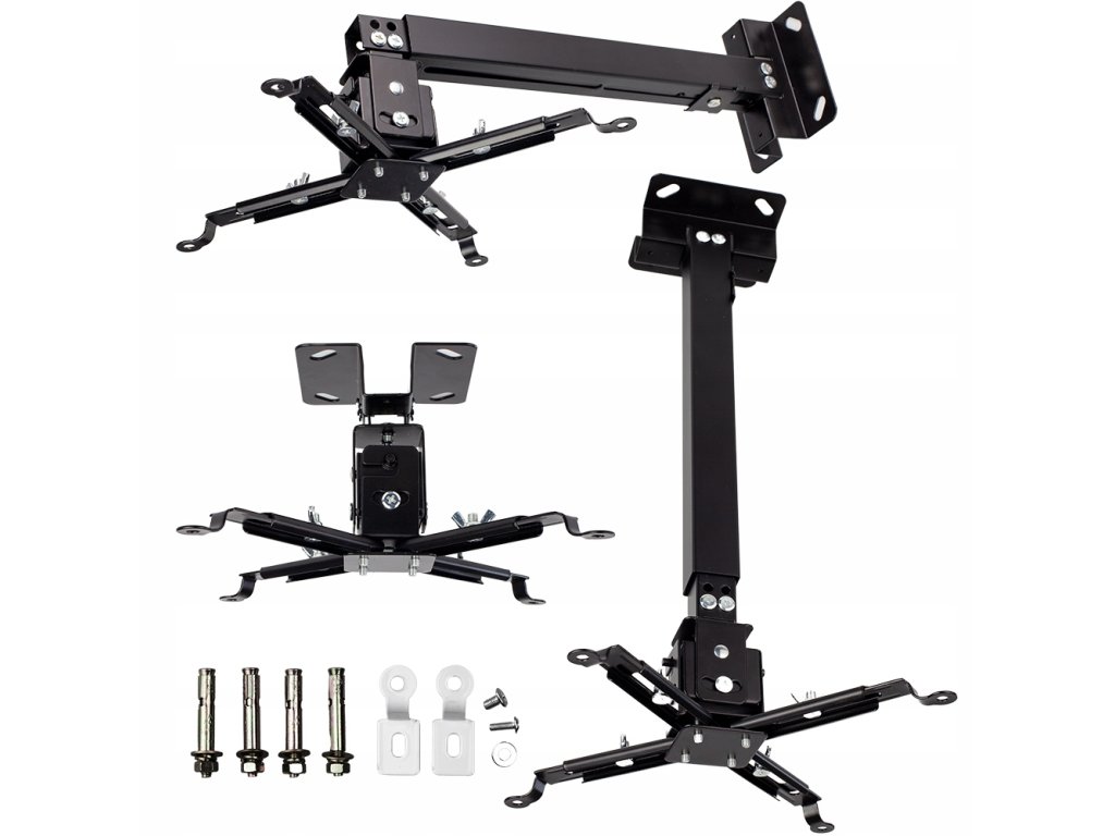 Držák je vyroben z kvalitní oceli, která zajišťuje stabilitu i pro těžší zařízení. Přestože se údaje o nosnosti v technických popisech liší, ocelové tělo je konstruováno tak, aby bezpečně udrželo projektory o hmotnosti až 15 kg.