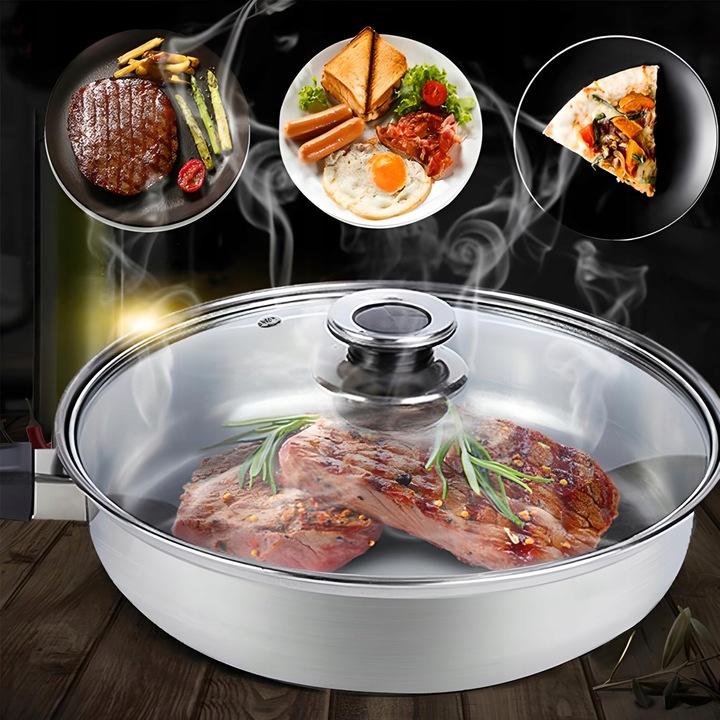 Nerezová ocel zajišťuje vysokou trvanlivost a odolnost proti korozi pro dlouholeté používání v kuchyni. Tento materiál rychle vede teplo a dlouho ho udržuje uvnitř nádoby. Ocel je zdravotně nezávadná a nereaguje s potravinami, takže jídlo si zachovává svou přirozenou chuť i vůni.
