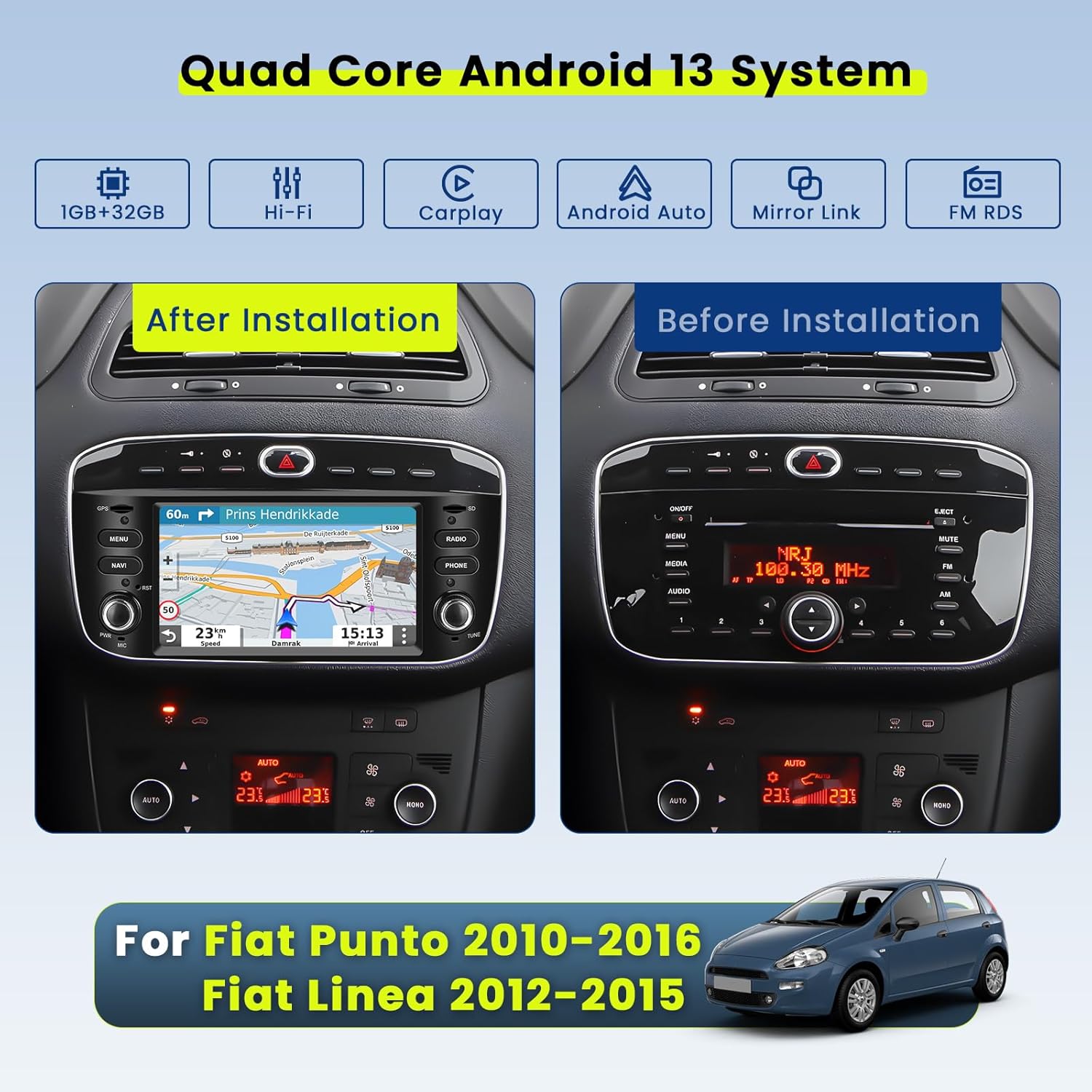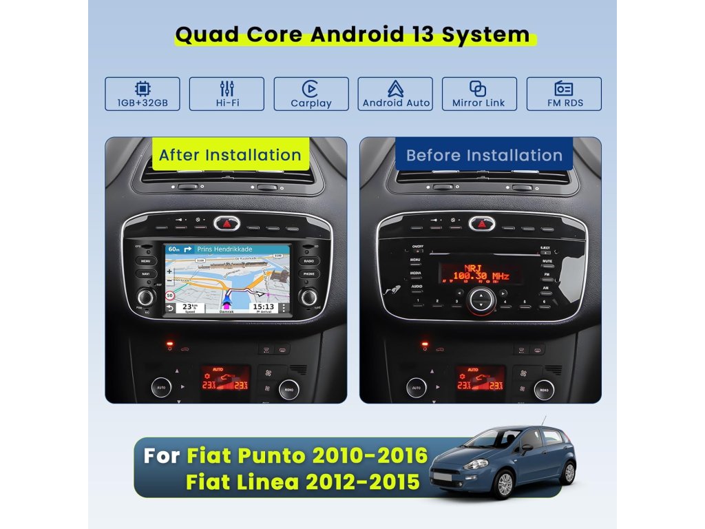 Tato vylepšená sada je dodávána s hlavní jednotkou, potřebnými propojovacími kabely, dekodérem Canbus a AHD couvací kamerou. Je navržena jako náhrada palubní desky pro modely Fiat Punto (roky 2010 až 2015) a Fiat Linea (roky 2012 až 2015). Před nákupem je nutné zkontrolovat, zda konektor propojovacího kabelu odpovídá originálnímu v automobilu