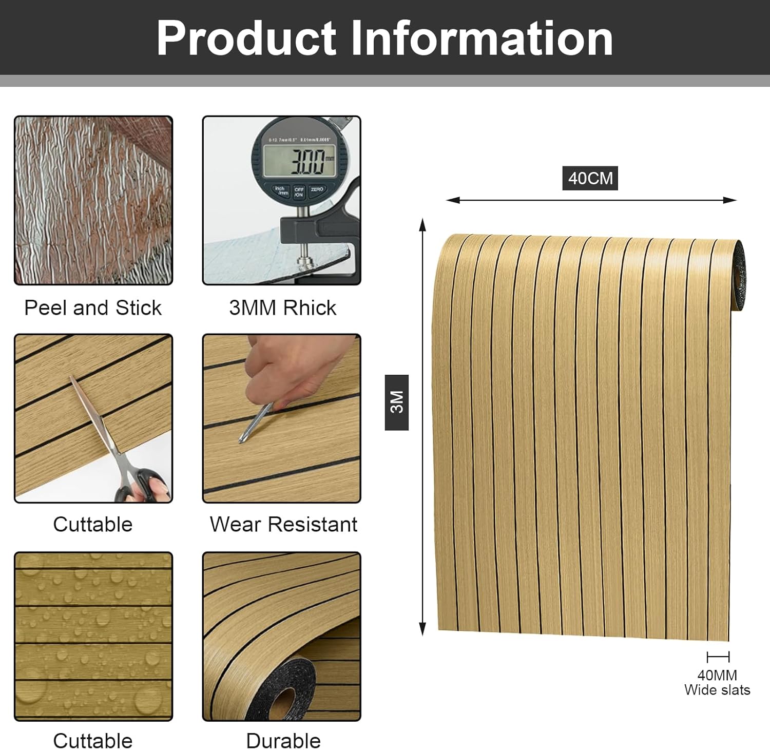 Panely kombinují vysoce kvalitní PVC s dřevěnou dýhou a polyesterovými vlákny. Celková tloušťka 3 mm zaručuje lehkost a usnadňuje manipulaci při montáži. Povrch věrně napodobuje přírodní dřevo a dodává každému prostoru hloubku i útulnou atmosféru. Materiál je navíc zcela bezpečný pro děti i domácí zvířata a splňuje veškeré nároky na každodenní provoz v domácnosti.