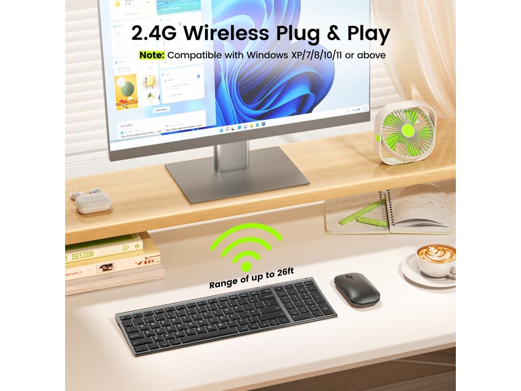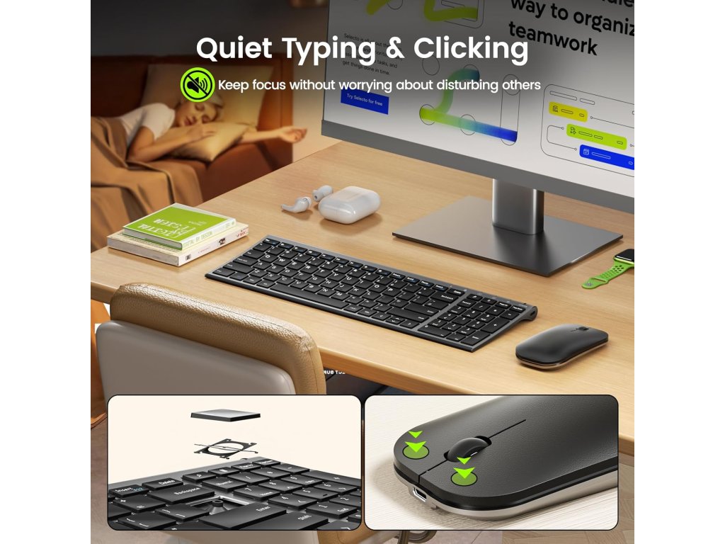 Klávesnice Seenda WGJP-031B je přibližně o třetinu menší než standardní modely, hodí se tak i na menší pracovní plochy. Přestože je set ultratenký a kompaktní, klávesnice obsahuje všechny základní funkce pro denní produktivitu včetně numerické klávesnice, ovladačů hlasitosti, Num Locku a rychlého přístupu ke kalkulačce. Pro ochranu před prachem a politím je součástí balení silikonová krytka.