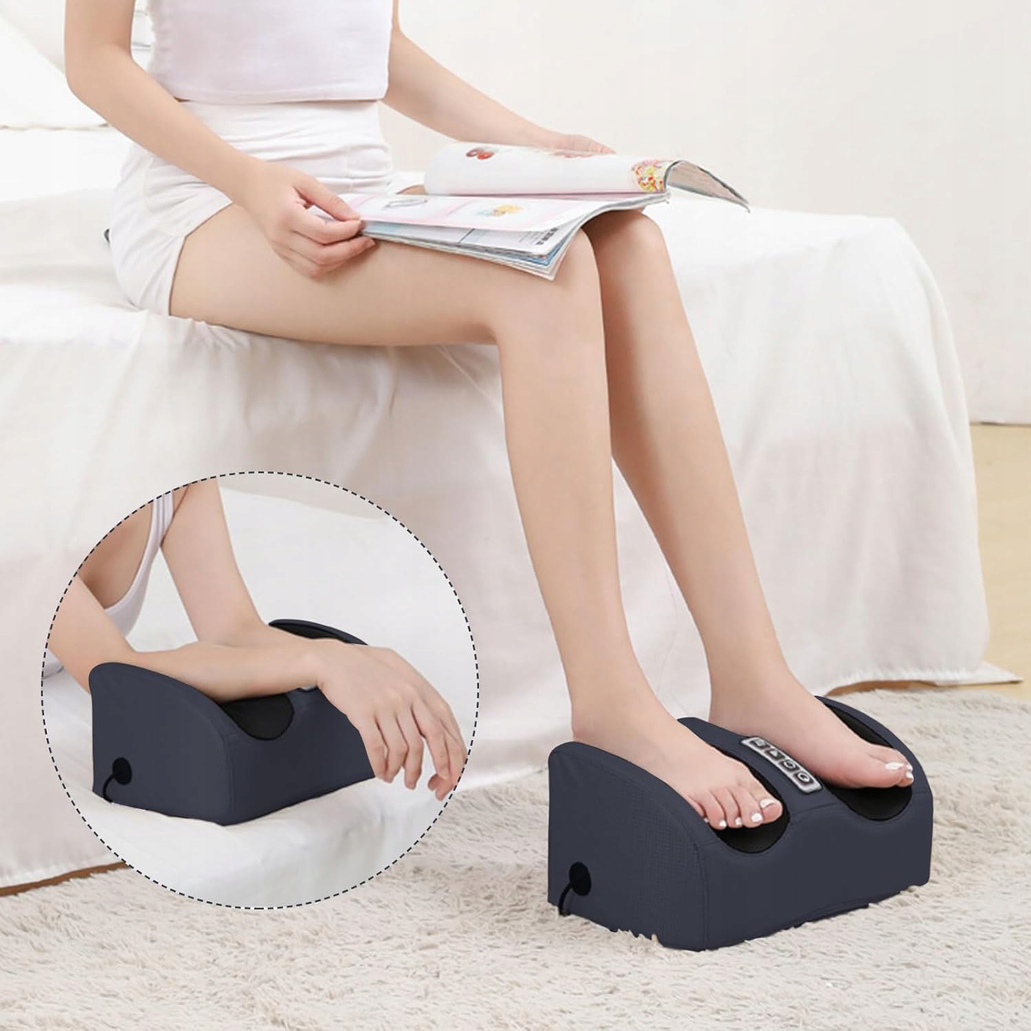 Masážní přístroj je navržen tak, aby efektivně ulevil unaveným svalům v různých částech těla. Kromě chodidel je vhodný i pro ostatní části nohou, poskytuje tak komplexní úlevu od svalového napětí po dlouhém pracovním dni nebo intenzivním tréninku. Pomáhá snižovat nervové napětí a celkovou únavu, přispívá k lepší pohodě.