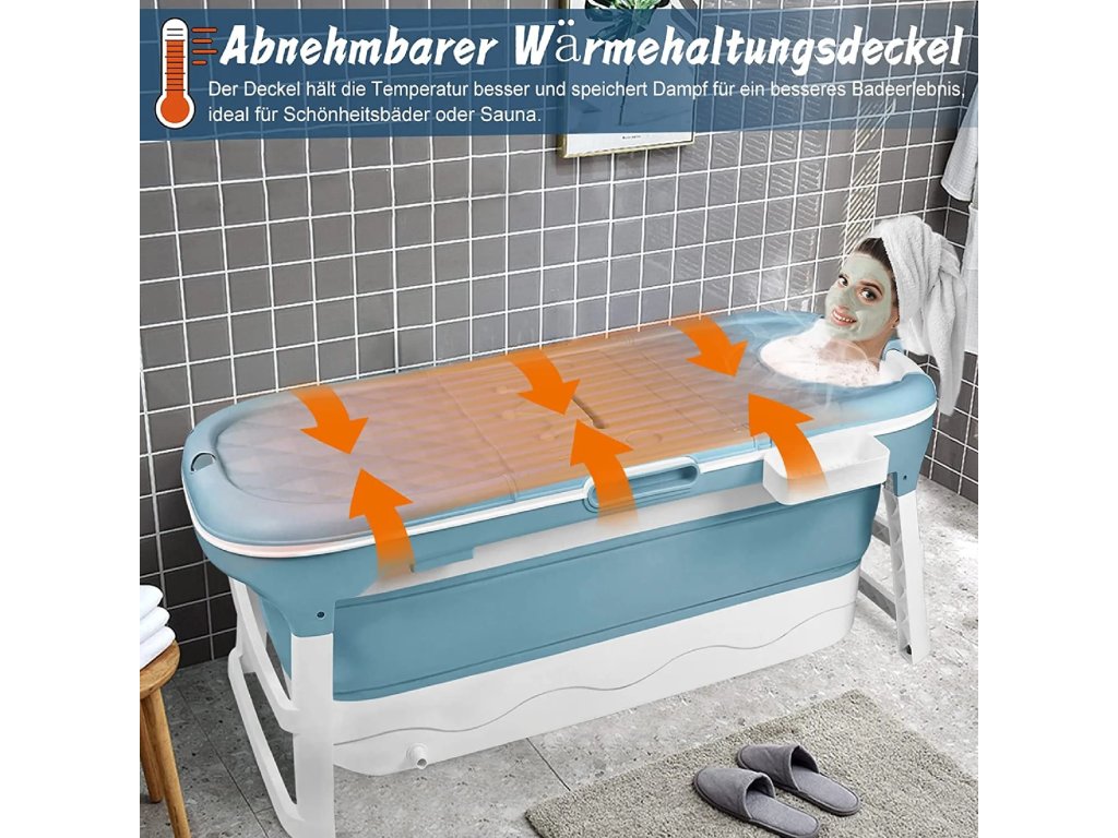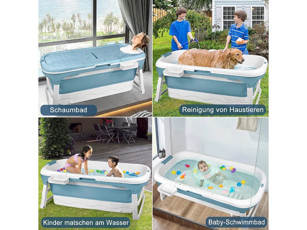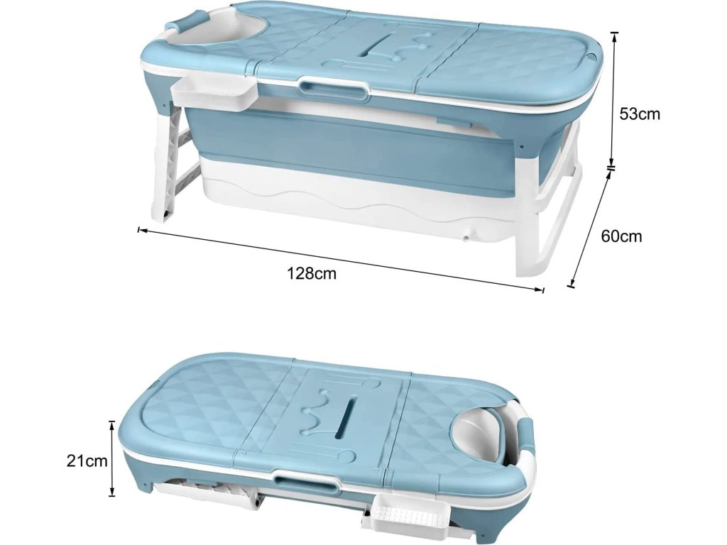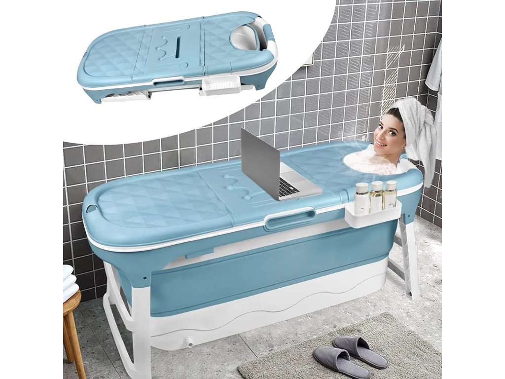 NAIZY modrá skládací vana 128x62x52 cm s masážními válečky a víkem