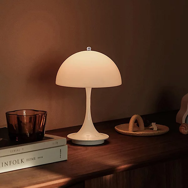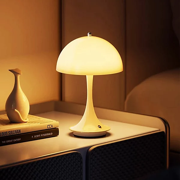 Stolní LED lampa ve tvaru houby, Bílá, USB dobíjecí, 23 cm, 3 teploty
