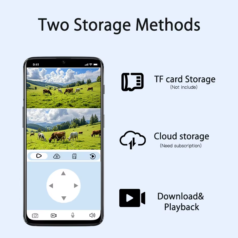 Konstrukce kamery je připravena na náročné venkovní podmínky. Odolává dešti, slunečnímu záření i sněhu a spolehlivě funguje při teplotách od -20 do 50 stupňů Celsia. Pořízené záznamy můžete ukládat na paměťovou TF kartu nebo využít cloudové úložiště. Obě varianty nabízejí snadné stahování a zpětné přehrávání uložených videí přímo v aplikaci.