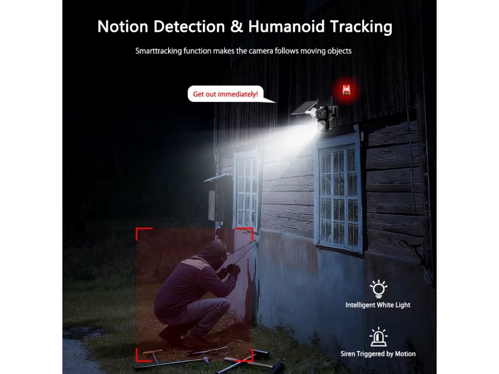 Zařízení disponuje funkcí detekce pohybu a chytrým sledováním lidské postavy. Jakmile zaznamená narušitele, dokáže aktivovat inteligentní bílé světlo a spustit zabudovanou sirénu. Pomocí mobilní aplikace lze kameru na dálku ovládat a otáčet v rozsahu 355 stupňů horizontálně a 90 stupňů vertikálně pro maximální pokrytí širokého okolí.