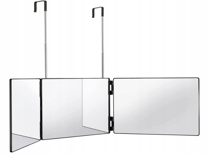 Zrcátko se skládá ze tří částí, které po úplném rozložení poskytují široký pozorovací úhel 180 stupňů. Tato vlastnost umožňuje bezproblémový pohled na všechny strany hlavy i obličeje. To oceníte zejména při samostatném stříhání, barvení vlasů nebo zaplétání složitějších účesů.