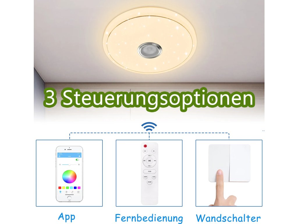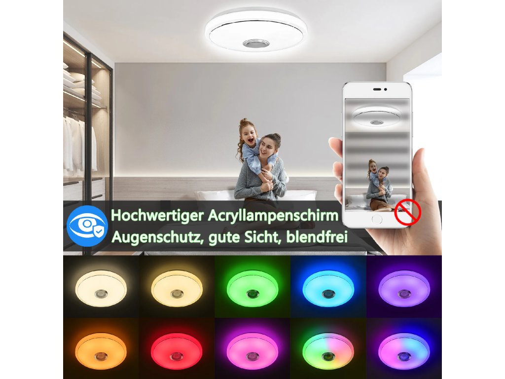 UISEBRT Chytré stropní LED svítidlo 36W s Bluetooth reproduktorem