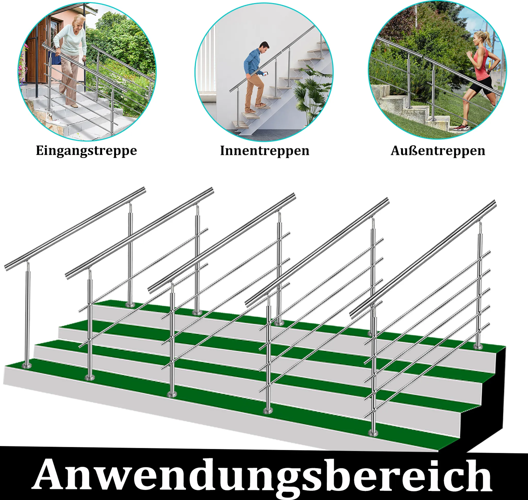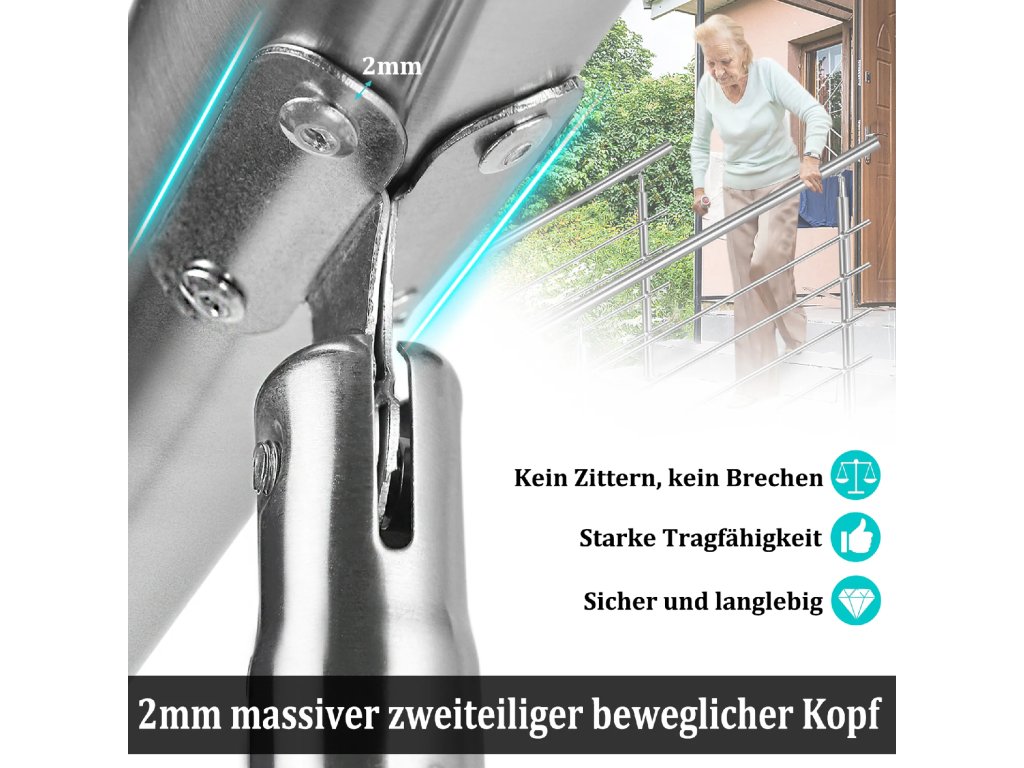 Kloubové podpěry umožňují plynulé nastavení úhlu sklonu, proto lze systém využít na vodorovných plochách balustrád i na prudkých schodištích. Tato flexibilita dělá ze zábradlí univerzální řešení pro různé typy stavebních konstrukcí v interiéru i exteriéru. Celková délka 180 cm se dvěma příčnými vzpěrami efektivně vyplňuje prostor pod madlem a zvyšuje celkovou ochranu.