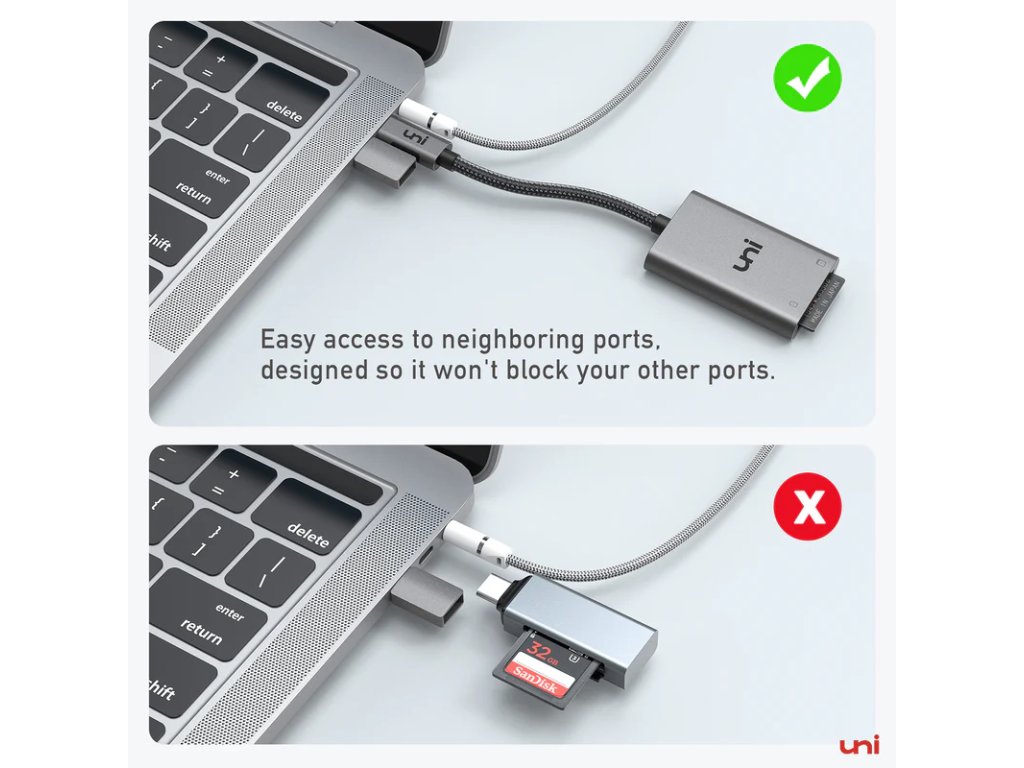 Díky konektoru USB-C je čtečka ideální pro použití na cestách. Poskytuje pohodlný přístup k MicroSD a SD kartám kdykoli je potřeba. Podporuje standard UHS-I a umožňuje tak rychlý přenos dat, což je klíčové pro správu velkých souborů, jako jsou fotografie ve vysokém rozlišení a 4K videa. Je nepostradatelným nástrojem pro každého, kdo potřebuje spolehlivě a efektivně pracovat s paměťovými kartami na cestách