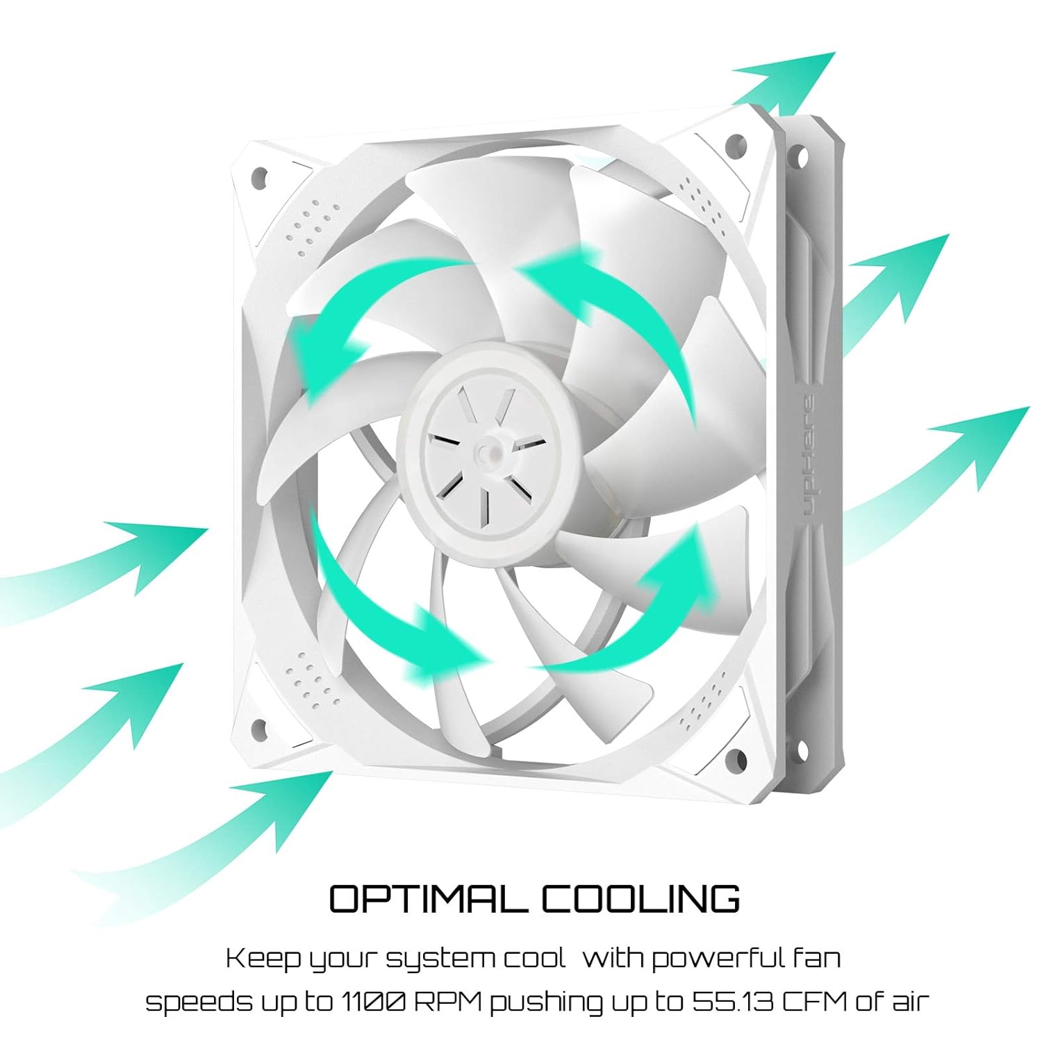 Konstrukce ventilátorů je optimalizována pro tichý provoz bez kompromisů ve výkonu. Rám je vybaven 8 tlumicími gumovými podložkami na obou stranách, které účinně stabilizují vnitřní provoz a snižují přenos hluku mezi ventilátorem a skříní počítače. Vylepšená struktura rámu minimalizuje turbulentní hluk a zároveň zvyšuje celkovou účinnost chlazení.