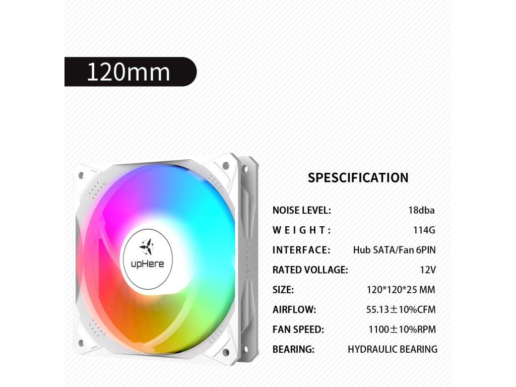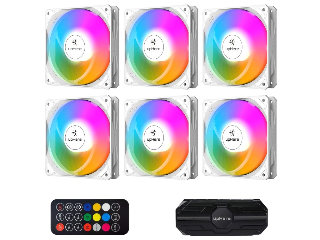 upHere NT1206-6 120mm RGB LED Sada 6ks Tichých Ventilátorů, bílá
