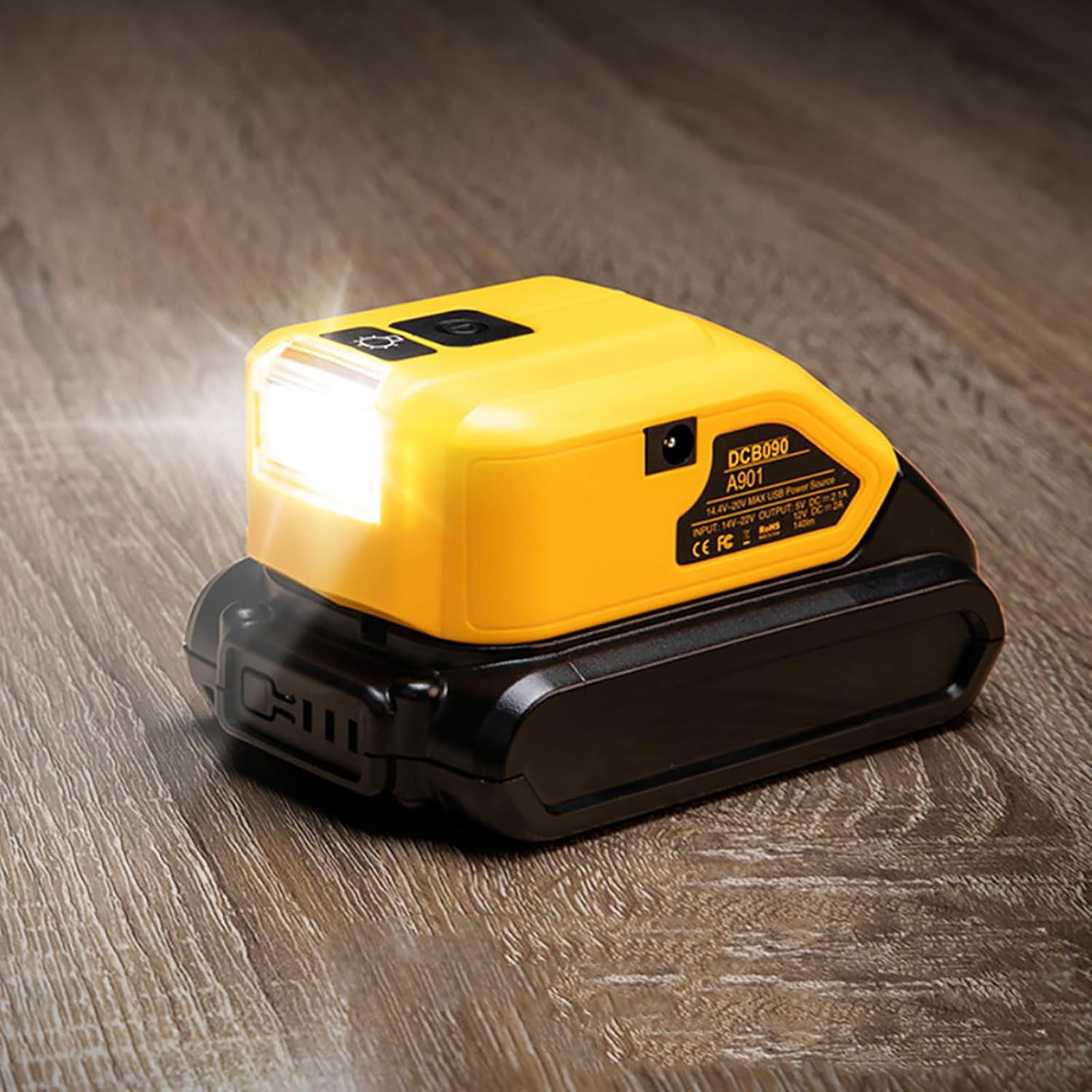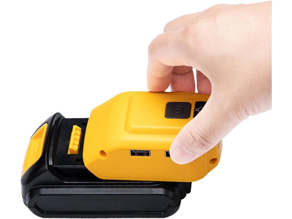 USB adaptér a svítilna na lithiové baterie Dewalt 14.4-20V XR