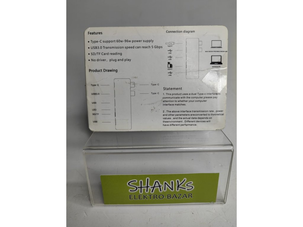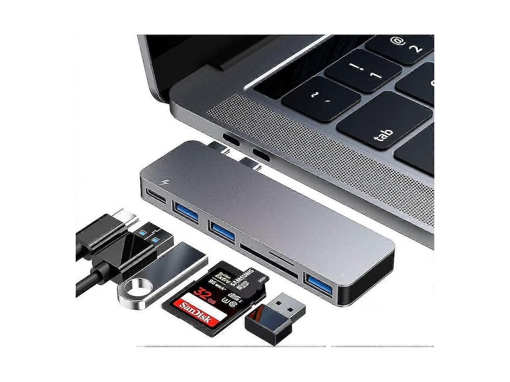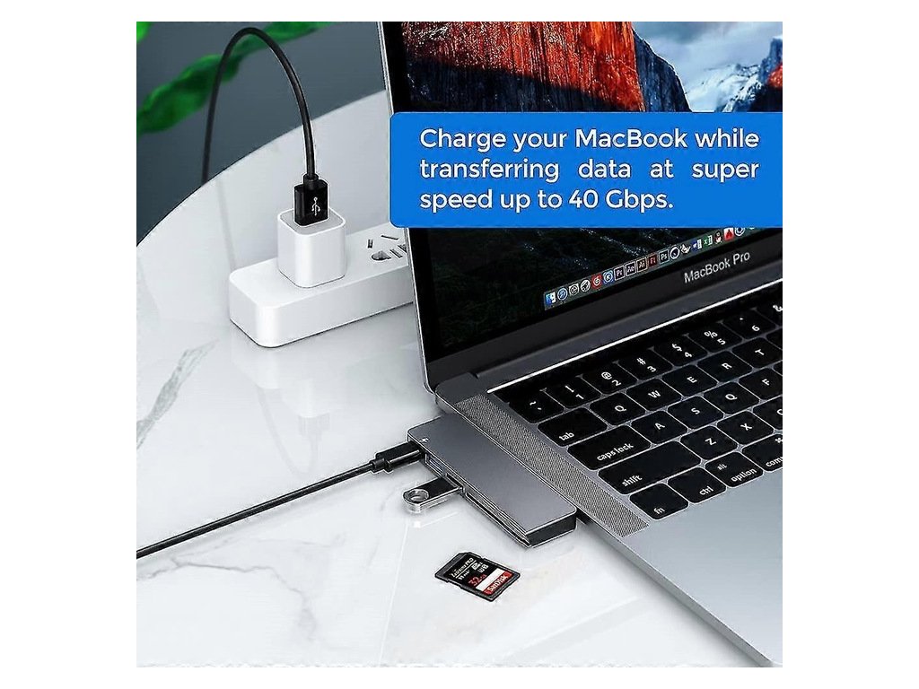 USB-C Hub 6v1 pro MacBook Pro, SD/TF, 3x USB3.0, Thunderbolt 3, hliník