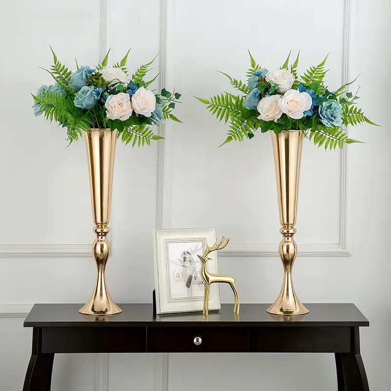 Vázy jsou vyrobeny z vysoce pevného železa. Tento materiál se vyznačuje vysokou odolností proti nárazu a deformacím. Povrch je upraven pokročilou technologií galvanizace zlatem, proto je velmi hladký, lesklý a odolný proti korozi. Vícenásobně leštěné hrany navíc zajišťují bezpečnou manipulaci bez nechtěného poškrábání rukou.