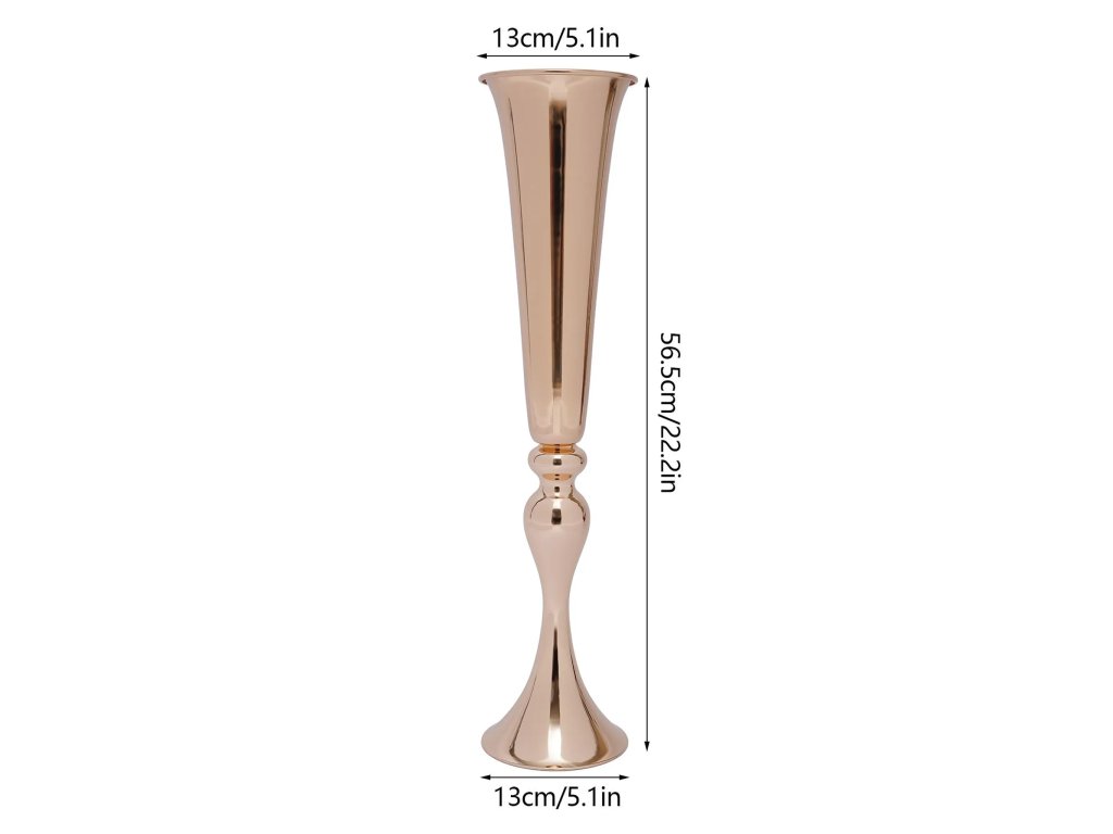 Atraktivní vzhled zajišťuje vysoká základna a klasické rozšířené tělo se širokou horní částí a úzkým dnem. Tento tvar nejen výborně vypadá, ale také poskytuje ideální prostor pro bezpečné umístění umělých květinových koulí nebo jiných aranžmá. Kovová povrchová úprava se svou strukturou blíží zrcadlové ploše a přináší nadčasovou módní krásu.