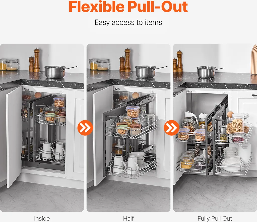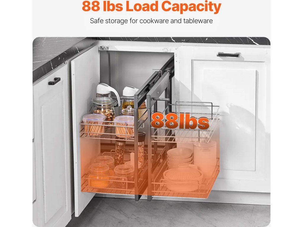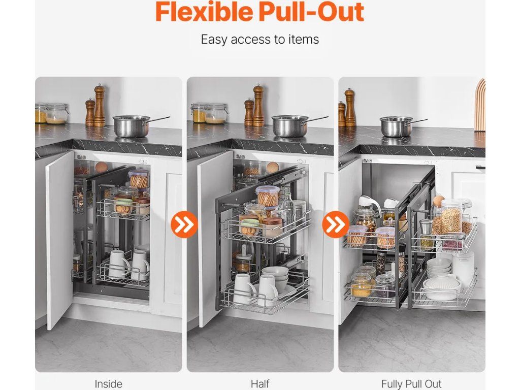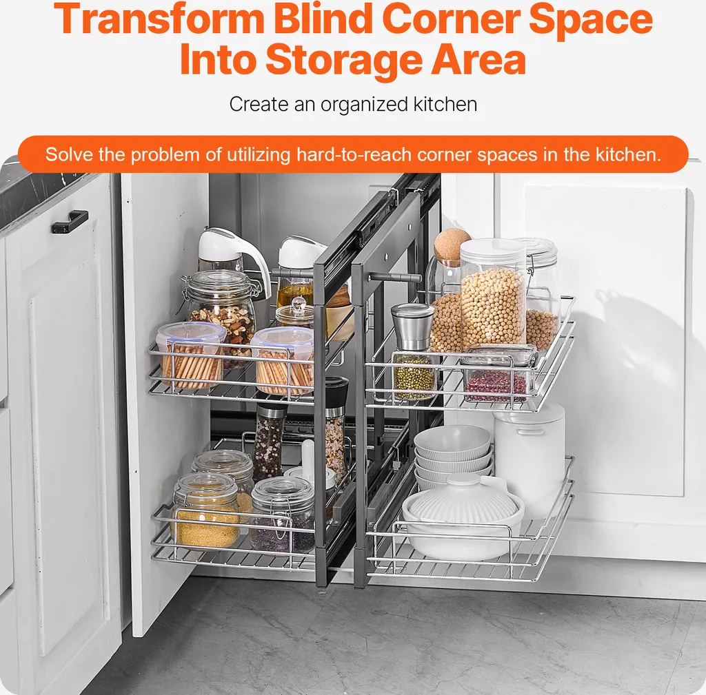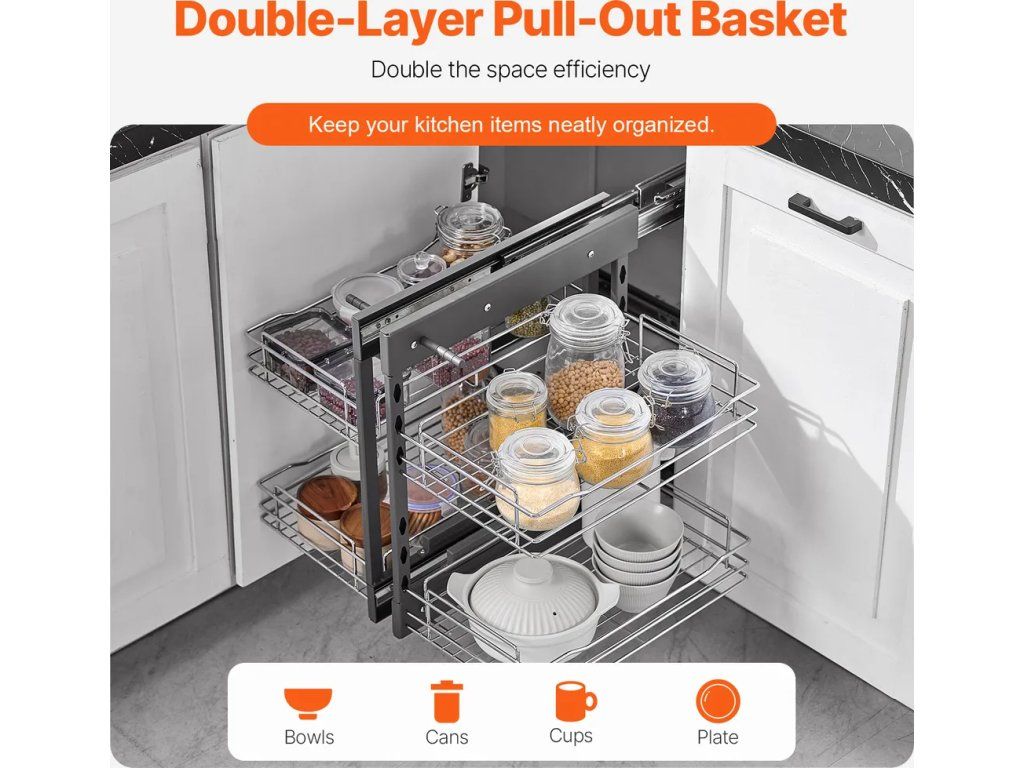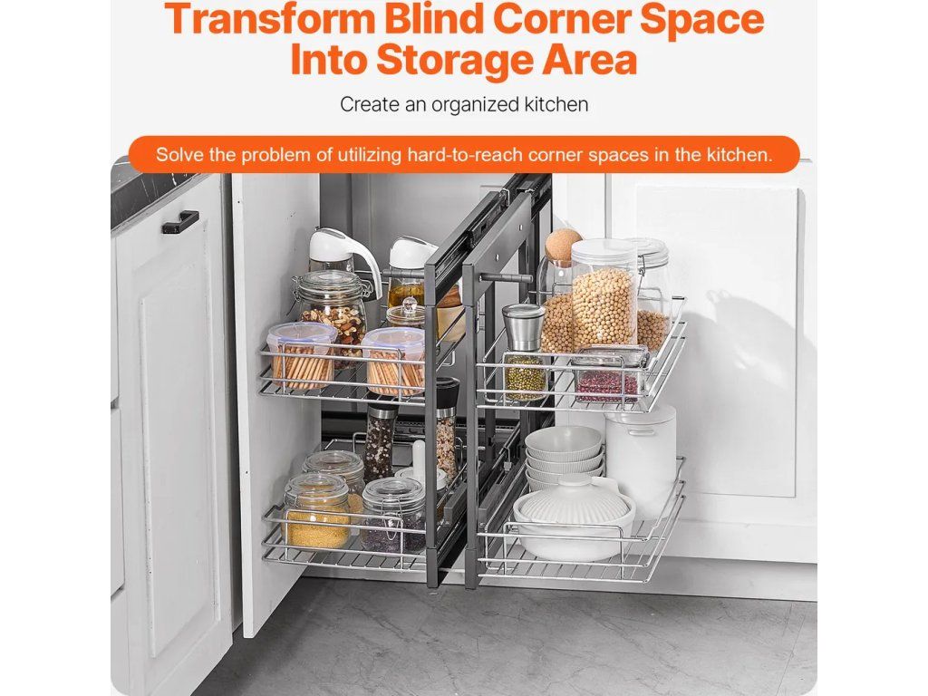 VEVOR kuchyňský výsuvný organizér do rohu, 4 koše, chromovaná ocel