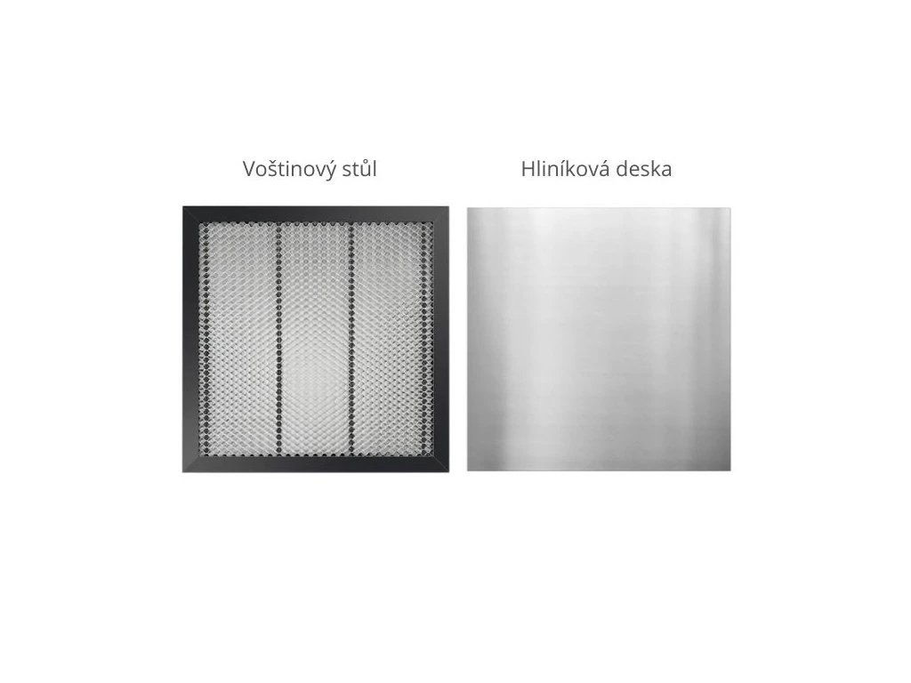 Voštinová deska o vnějších rozměrech 45 x 45 cm je speciálně navržena pro laserové gravírování. Její aktivní pracovní plocha je 40 x 40 cm, což je ideální pro většinu standardních projektů. Konstrukce z kombinace nerezové oceli a hliníku zajišťuje dlouhou životnost a odolnost proti korozi a ohni, což je pro bezpečné použití klíčové.