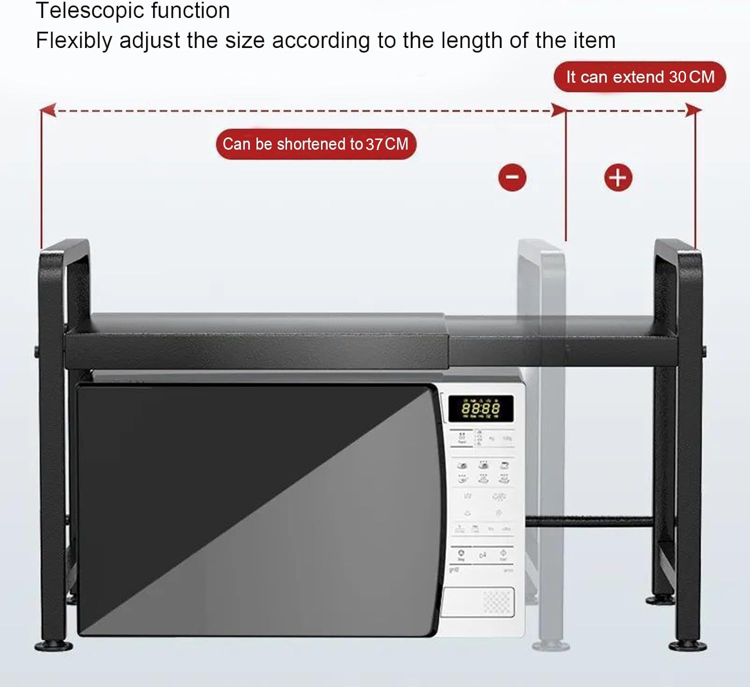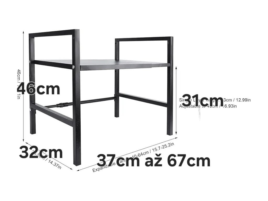 Hlavní předností tohoto organizéru je jeho teleskopická konstrukce umožňující nastavení rozměrů podle potřeby. Tyto vlastnosti dovolují umístit stojan nad různé typy spotřebičů v kuchyni nebo tiskárny v kanceláři. Vrchní police poskytuje ideální plochu pro lahve, sklenice, misky nebo pánve, čímž uvolňuje místo přímo na pracovní desce.