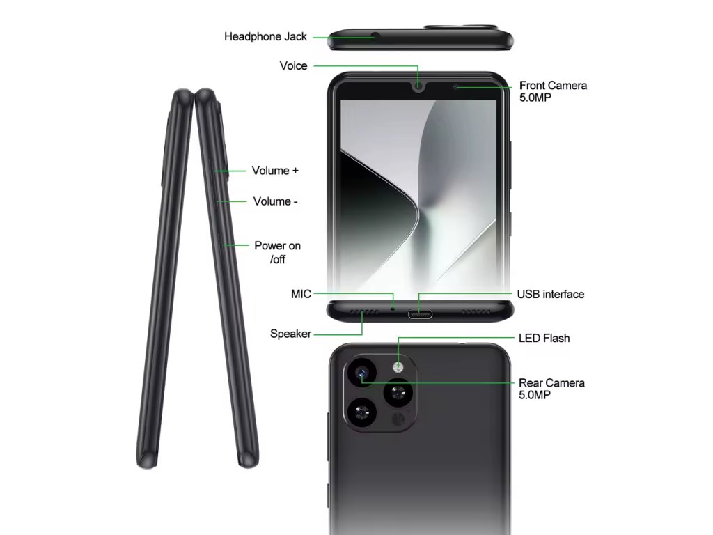 Srdcem telefonu je čtyřjádrový procesor MT6580M a 2 GB operační paměti (RAM), které zajišťují dostatečný výkon pro plynulý běh operačního systému Android OS 9.0. Interní úložiště o kapacitě 16 GB poskytuje prostor pro aplikace a soubory. Uživatelé mají možnost rozšířit tuto paměť pomocí TF karty až o 256 GB, čímž získají obrovskou kapacitu pro fotografie, videa a média. Telefon podporuje dvě SIM karty (Nano SIM a Micro SIM) pro duální pohotovostní režim.