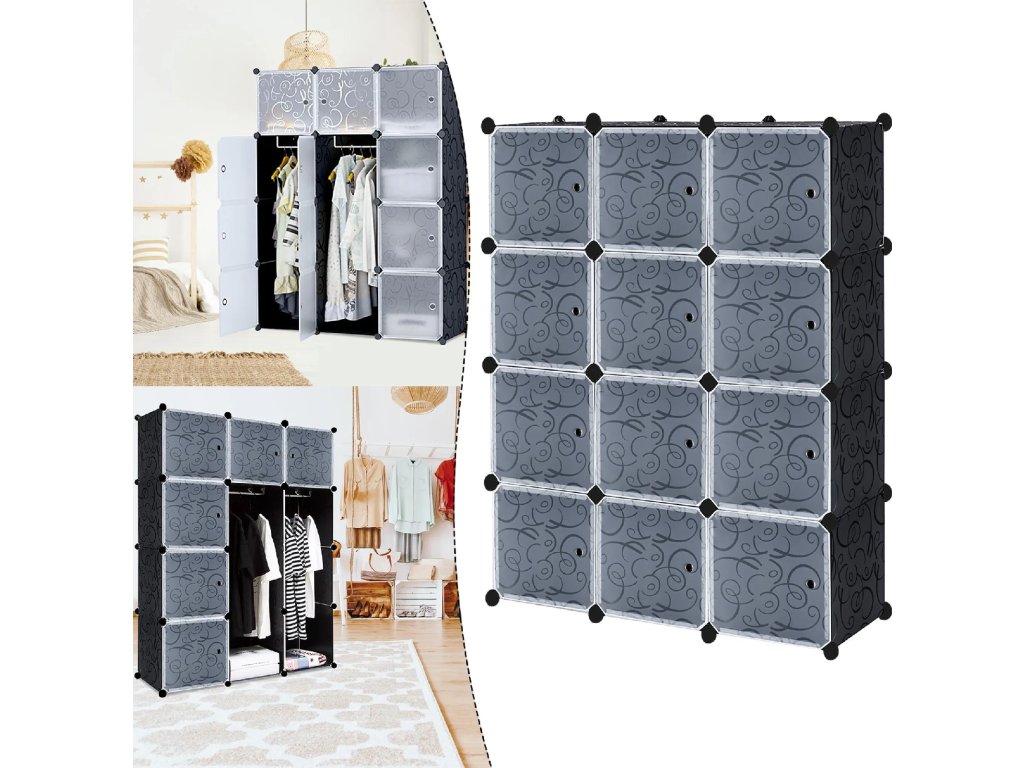 XINZI černá modulární šatní skříň, 12 boxů, PP plast, 105x140 cm