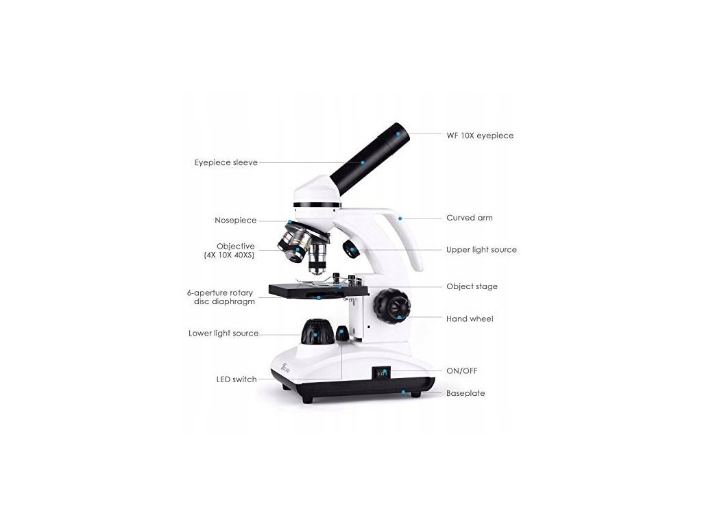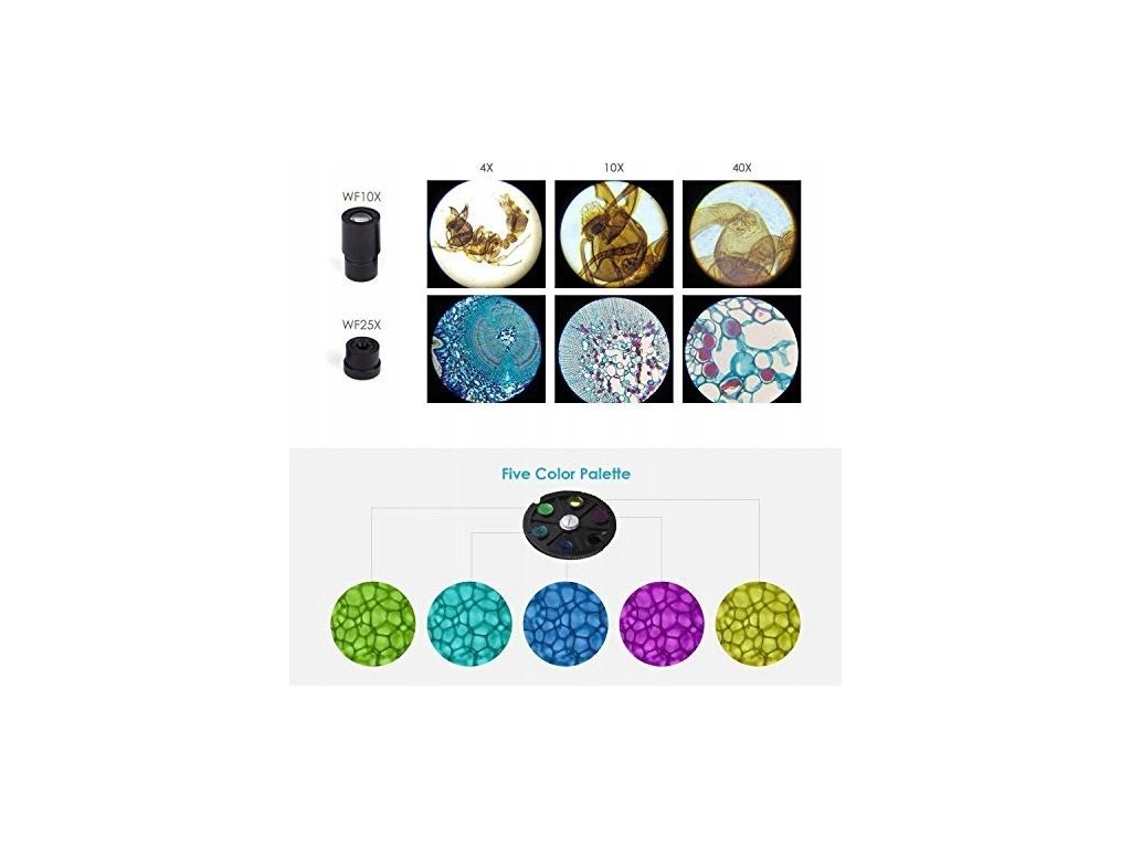 Mikroskop nabízí tři úrovně zvětšení: X40, X100 a X400. Tyto možnosti umožňují přizpůsobit obraz druhu pozorovaného vzorku a objevovat stále nové detaily mikro světa, od listů po drobné organismy.