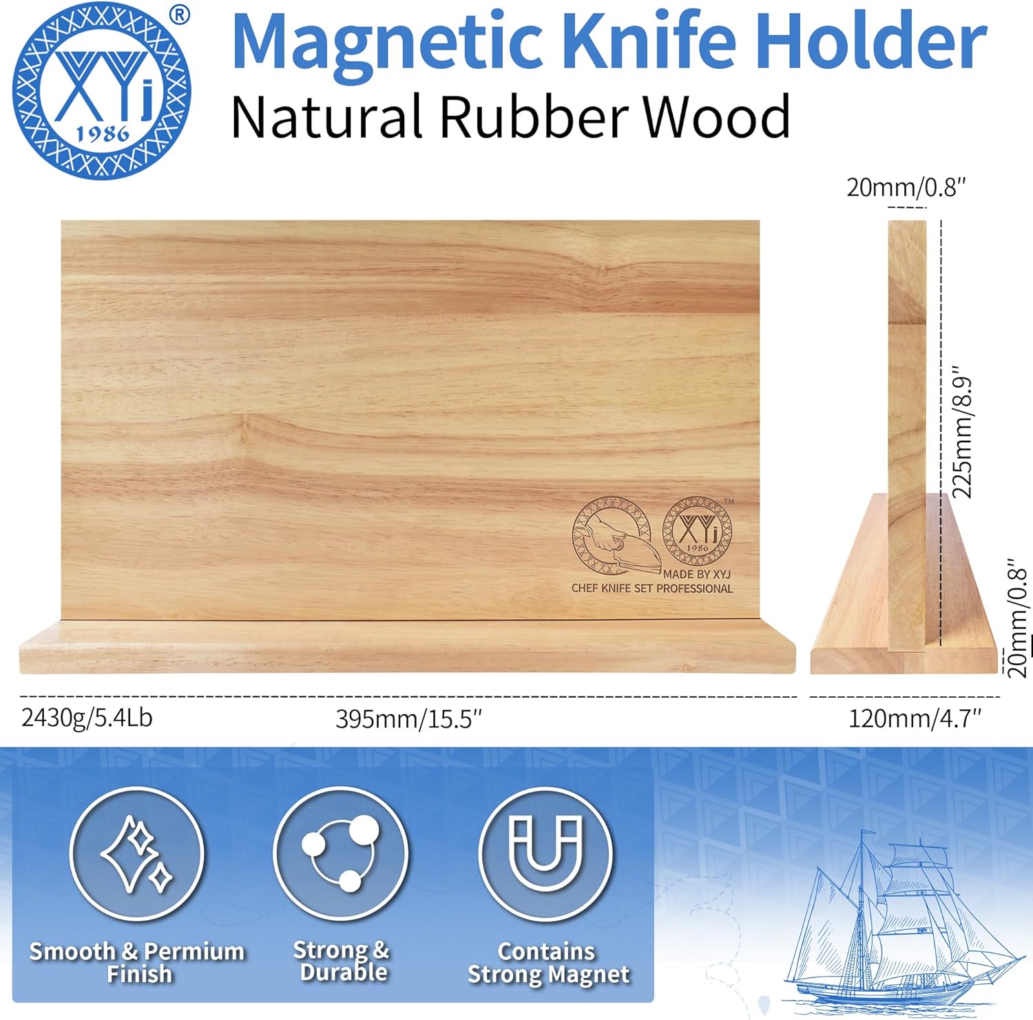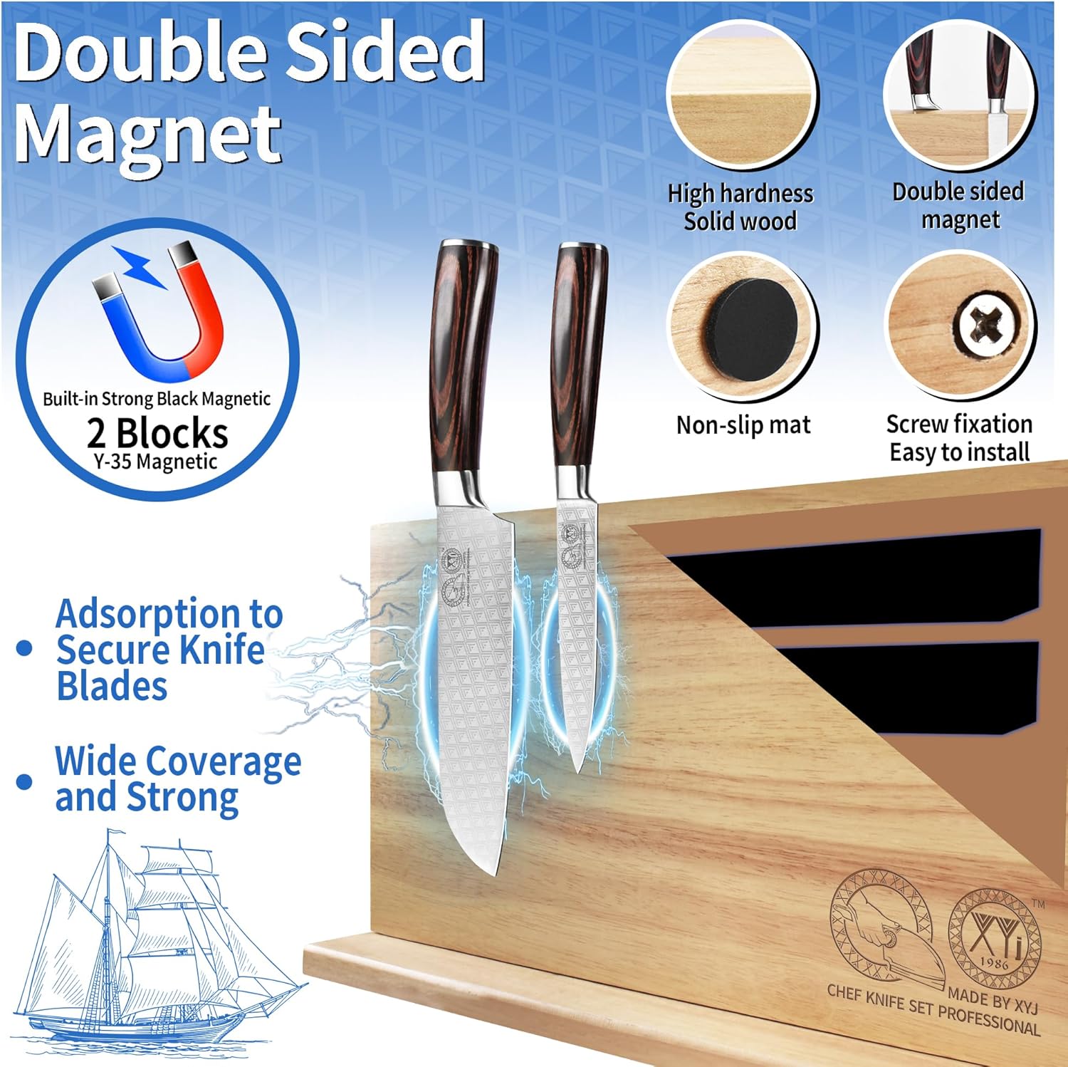 XYJ FCFG Oboustranný dřevěný blok na nože, magnetický