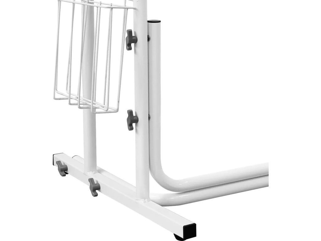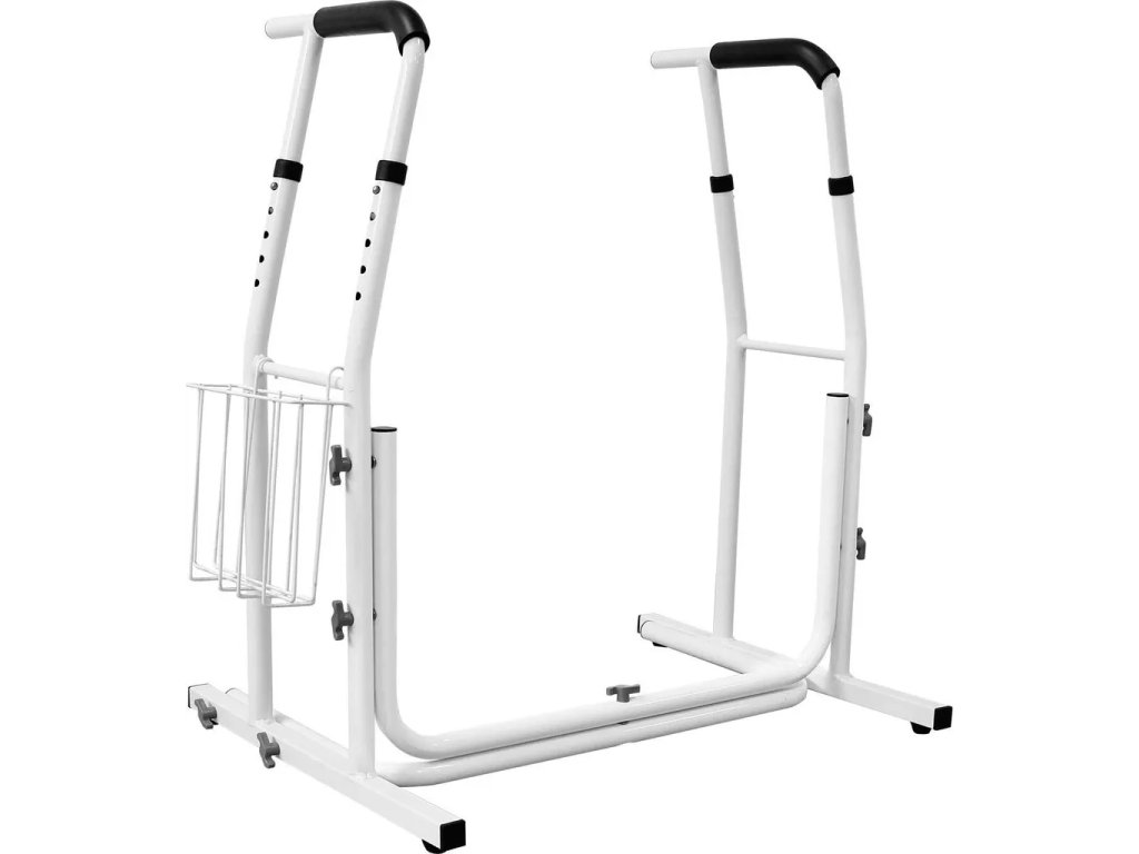 Područky jsou opatřeny měkkou EVA pěnou, která je příjemná na dotek a zabraňuje sklouznutí rukou. Protiskluzové podložky na nohách stojanu zajišťují pevnou pozici na mokrém povrchu a minimalizují riziko pádů. Praktickým doplňkem je odnímatelný úložný koš, do kterého lze odložit časopisy nebo knihy pro větší pohodlí při používání