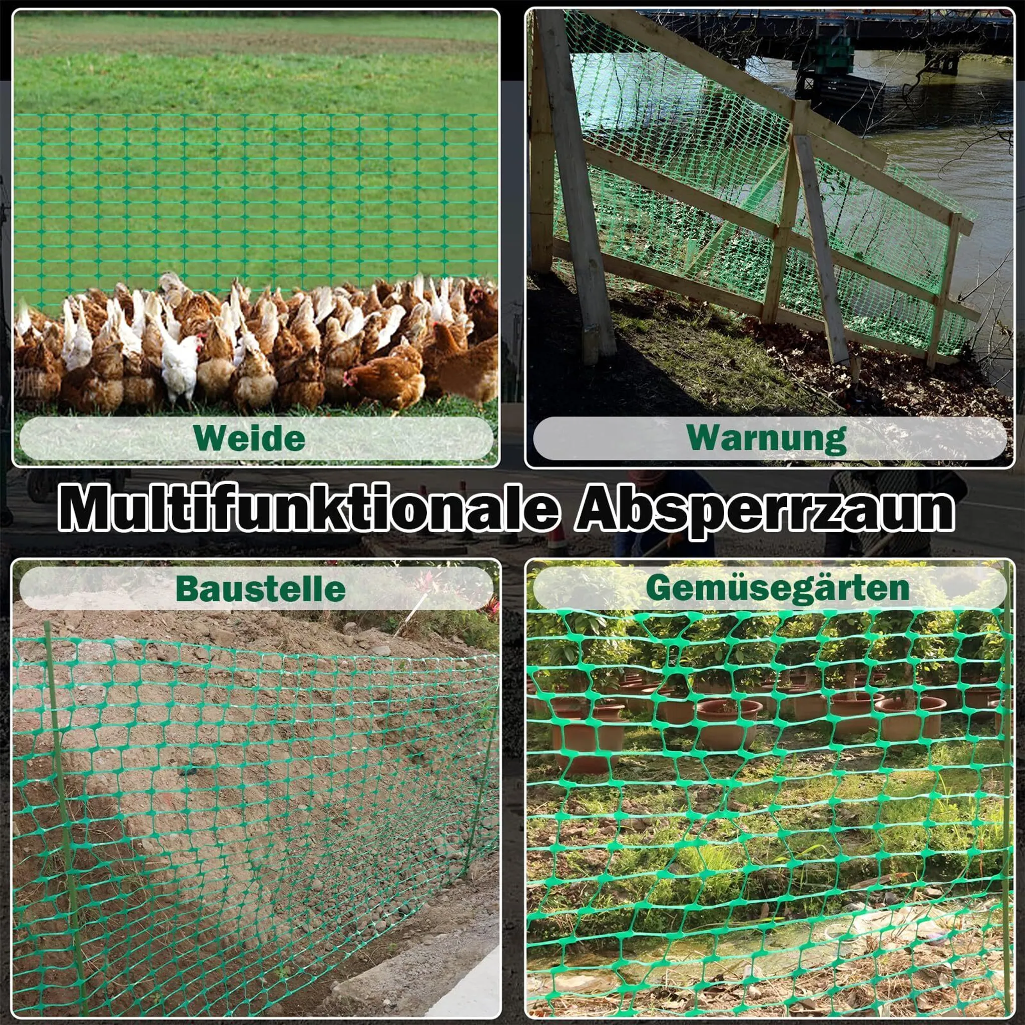 Produkt nachází uplatnění v široké škále situací, od ochrany zahradních záhonů až po tvorbu bezpečných výběhů pro štěňata či drůbež. V zimním období funguje jako efektivní zábrana proti sněhovým závějím u silnic a cest. Zelené provedení s plochým profilem ok o rozměru 70 x 35 mm zajišťuje dobrou viditelnost a zároveň esteticky splývá s okolní vegetací na pastvinách a zahradách