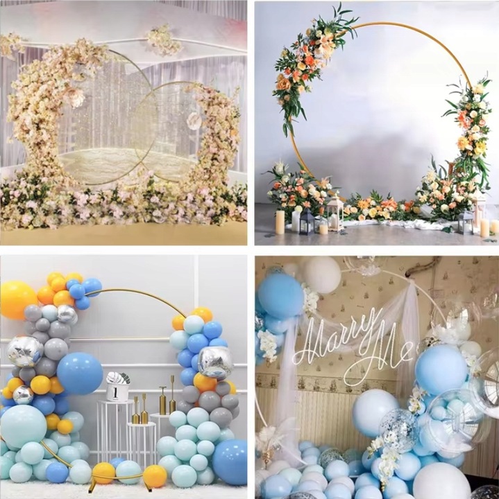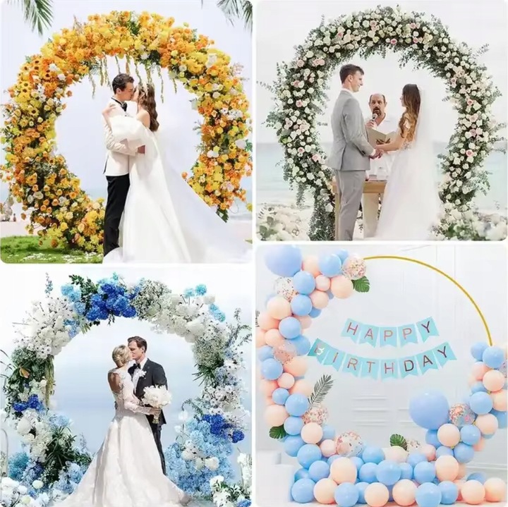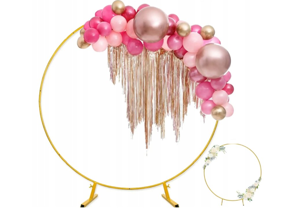Zlatý kovový stojan na balónky, průměr 2,2m, svatební stěna a dekorace