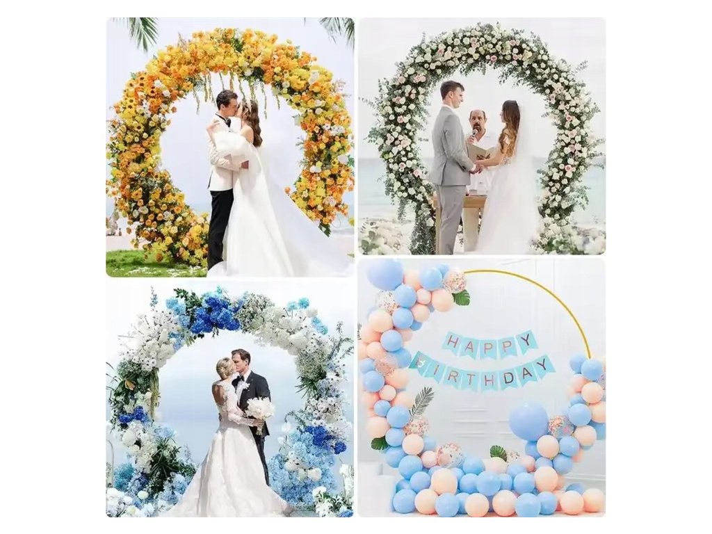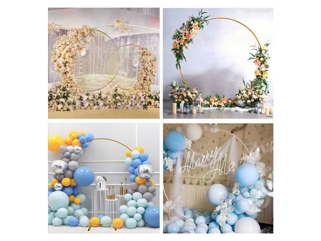 Stojan slouží jako variabilní základ pro širokou škálu dekoračních materiálů. Můžete na něj snadno připevnit balónky, živé či umělé květiny nebo lehké textilie. Tato flexibilita umožňuje vytvořit unikátní fotostěnu nebo vkusné pozadí za hlavní tabuli při jakékoliv události.